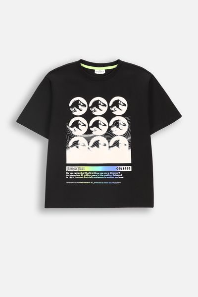 Tričko s krátkým rukávem - černý s potiskem vpředu licence JURASSIC PARK - Velikost: 134 - pro chlapce