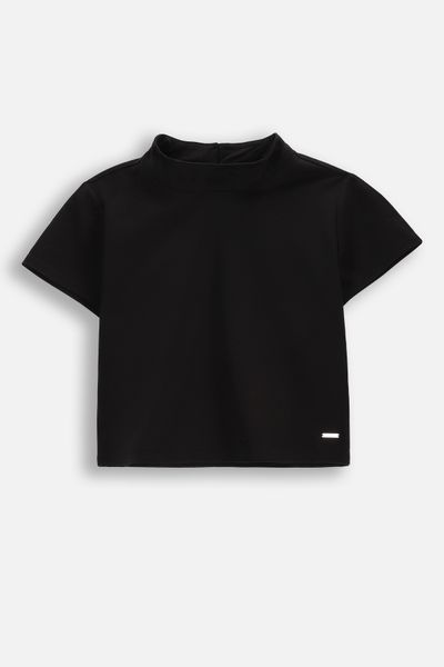 Tričko s krátkým rukávem - černý hladký rolák - Velikost: 164 - pro dívku