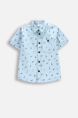 COCCODRILLO Koszula z krótkim rękawem - błękitna z kołnierzykiem i nadrukiem na całości - rozmiar 122 - dla chłopca