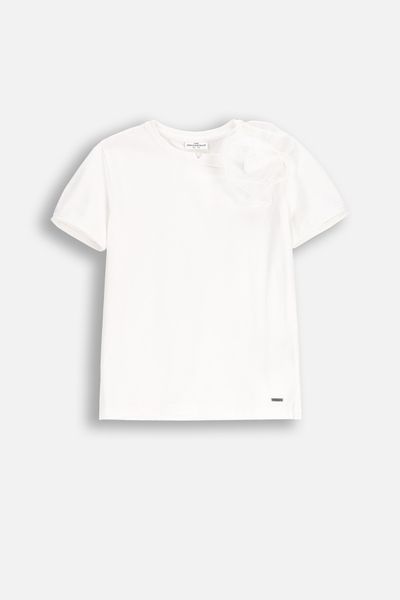 Tričko s krátkým rukávem - Bílý s odepínatelnou květinou - Velikost: 164 - pro dívku