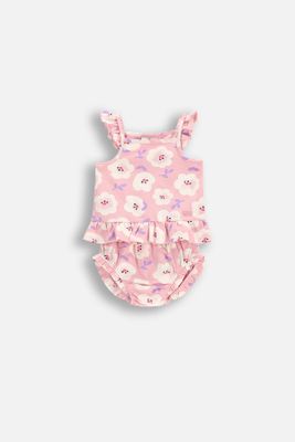 COCCODRILLO Komplet bawełniany - różowy z kwiatowym nadrukiem - rozmiar 80 - dla dziewczynki