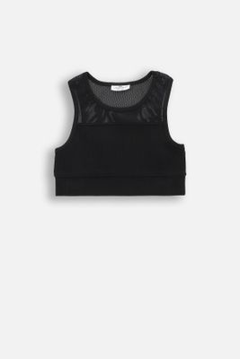 COCCODRILLO Top prążkowany - czarny z ozdobną siateczką - rozmiar 164 - dla dziewczynki