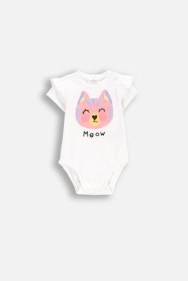 COCCODRILLO Body z krótkim rękawem - białe z nadrukiem kota na przodzie i opcją rośnie wraz z dzieckiem - rozmiar 56 - dla dziewczynki