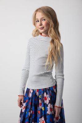 COCCODRILLO T-shirt prążkowany z długim rękawem - ecru w paski i kontrastowym wykończeniem - rozmiar 140 - dla dziewczynki
