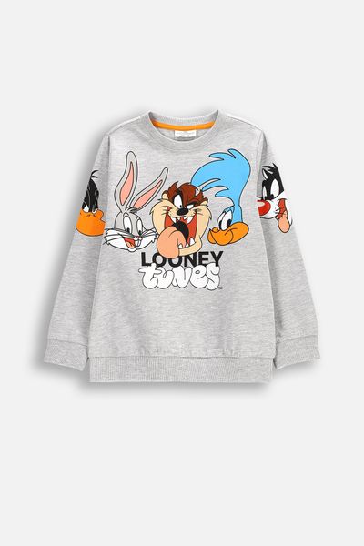 Tričko s dlouhým rukávem - šedý s potiskem licence Looney Tunes - Velikost: 92 - pro chlapce