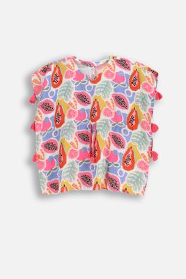 COCCODRILLO Ponczo tkaninowe - wielokolorowe z ozdobnymi chwostami - rozmiar 140 - dla dziewczynki