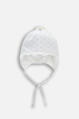 COCCODRILLO Czapka przejściowa - biała wiązana - rozmiar 36 - dla dziewczynki
