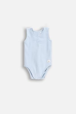 COCCODRILLO Body bez rękawów - błękitne z napisem na przodzie i opcją rośnie wraz z dzieckiem - rozmiar 56 - dla chłopca