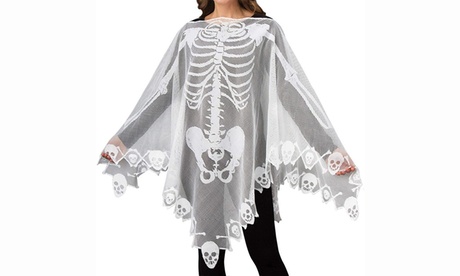 Halloween Costume Lace Skeleton Poncho for Women in White | One Size