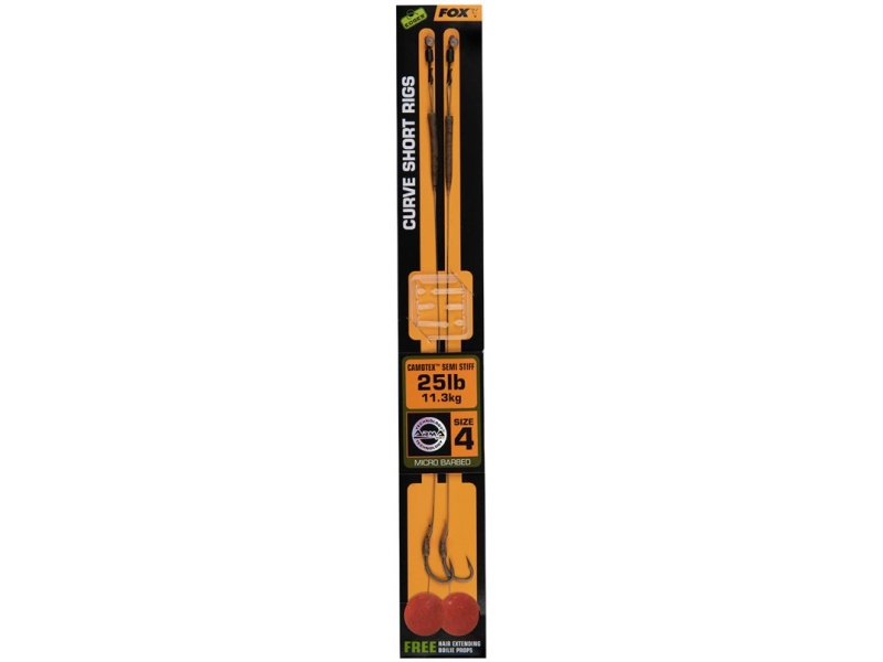 FOX - Hotový návazec Edges Curve Short Rigs vel. 4 25 lb Camotex Semi Stiff 2 ks