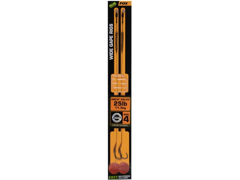 FOX - Hotový návazec Edges Wide Gape Rigs vel. 4 25 lb Camotex Semi Stiff 2 ks