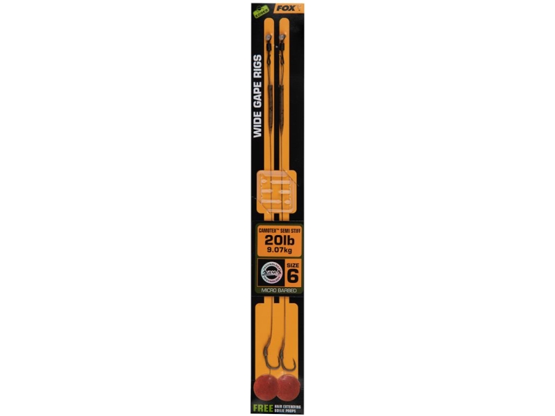 FOX - Hotový návazec Edges Wide Gape Rigs vel. 6 20 lb Camotex Semi Stiff 2 ks
