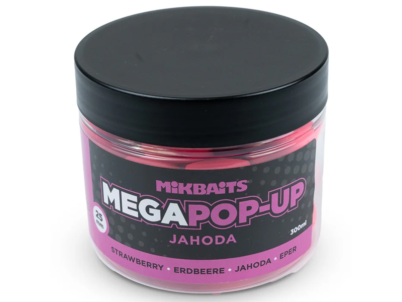 MIKBAITS - Mega plovoucí Fluo boilie 25 mm 300 ml Jahoda
