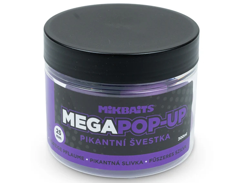 MIKBAITS - Mega plovoucí Fluo boilie 25 mm 300 ml Pikantní švestka