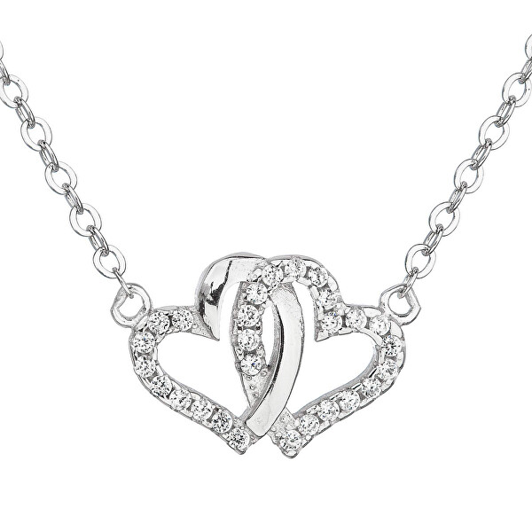 Evolution Group Strieborný náhrdelník so zirkónom biele srdce 12006.1