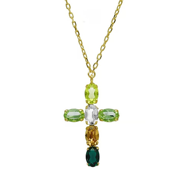 Victoria Cruz Pozlátený dámsky náhrdelník Kríž s kryštálmi Harmony A4691-20DG