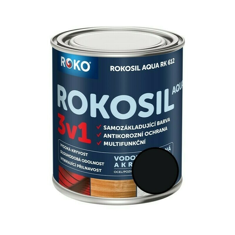 Barva samozákladující Rokosil Aqua 3v1 RK 612 1999 černá, 3 l