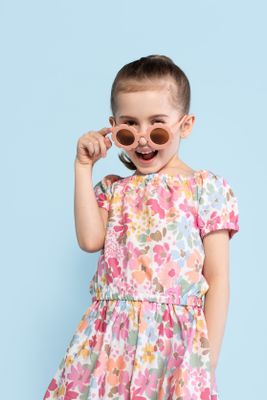 COCCODRILLO Bluzka z krótkim rękawem - wielokolorowa z kwiatowym nadrukiem typu crop top - rozmiar 104 - dla dziewczynki