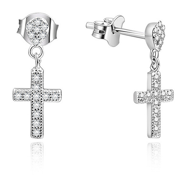 Brilio Silver Divatos ezüst fülbevaló cirkónium kövekkel Kereszt EA572W