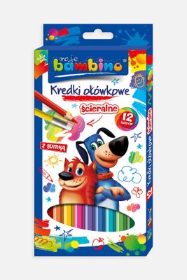 BAMBINO Kredki ołówkowe wymazywalne z gumką 12 kolorów - heksagonalne - rozmiar ONE SIZE -