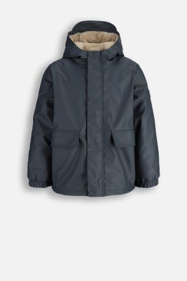 COCCODRILLO Kurtka przeciwdeszczowa gumowana - grafitowa parka z futerkiem w środku i kapturem - rozmiar 134 - dla chłopca