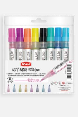 TOMA Marker Outline srebrny z konturem 8 pack - metaliczny permanentny różne kolory - rozmiar ONE SIZE -