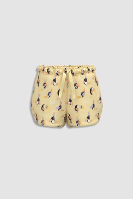 NAME IT Szorty dzianinowe REGULAR FIT - żółte ze sznurkiem w pasie i wzorem w tukany - rozmiar 98 - dla dziewczynki