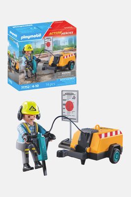 PLAYMOBIL Zestaw figurek City Action Pracownik budowlany z młotem pneumatycznym 71752 - 14 elementy 4+ - rozmiar ONE SIZE -