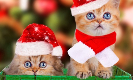 Dog Cat Santa Hat with Scarf Christmas Pet Outfit Adjustable Pet Costume Set in Red | Small
