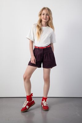 COCCODRILLO Spodenki tkaninowe - wielokolorowe w kratę z ozdobnym paskiem - rozmiar 140 - dla dziewczynki