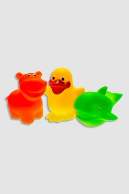 MOM'S CARE Gumowe zabawki do kąpieli 3 pack w siatce na przyssawki - kolorowe zwierzaki morskie z piszczałką i psikawką - rozmiar ONE SIZE -