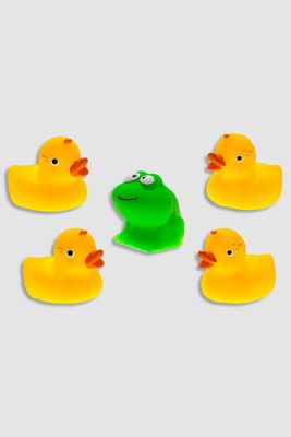 MOM'S CARE Gumowe zabawki do kąpieli 5 pack - żabka i 4 kaczki z piszczałką i psikawką - rozmiar ONE SIZE -