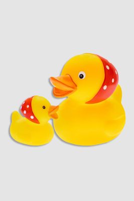 MOM'S CARE Gumowe zabawki do kąpieli 2 pack - żółte kaczki z chustką, piszczałką i psikawką - rozmiar ONE SIZE -