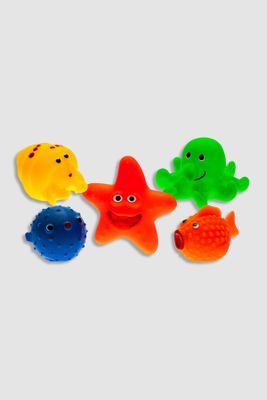 MOM'S CARE Gumowe zabawki do kąpieli 5 pack - kolorowe zwierzaki morskie z piszczałką i psikawką - rozmiar ONE SIZE -