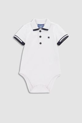 COCCODRILLO Body z krótkim rękawem - białe z kołnierzykiem typu polo - rozmiar 62 - dla chłopca