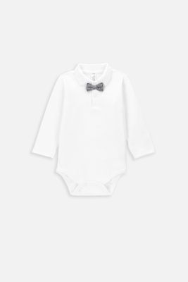 Coccodrillo body z długim rękawem - biały z kołnierzykiem typu polo i muchą - rozmiar 98 - dla chłopca