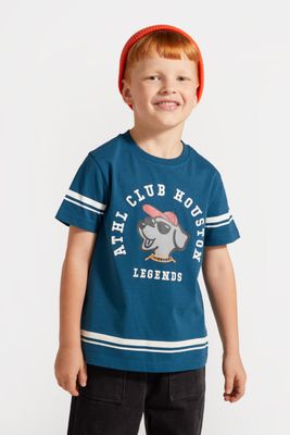 Coccodrillo t-shirt z krótkim rękawem - niebieski z nadrukiem na przodzie - rozmiar 122 - dla chłopca