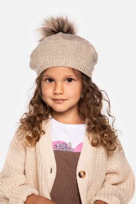 BROEL Czapka przejściowa z pomponem - dziewczęca typu beret - rozmiar 50 - dla dziewczynki