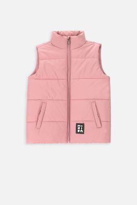 MOKIDA Bezrękawnik pikowany - pudrowy róż wodoodporny ze stójką i ociepleniem - rozmiar 116 - dla dziewczynki