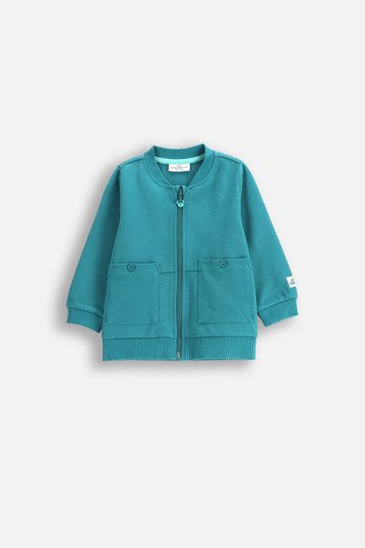 Rozepínací mikina - tyrkysová bez kapuce s kapsami - Velikost: 86 - pro chlapce