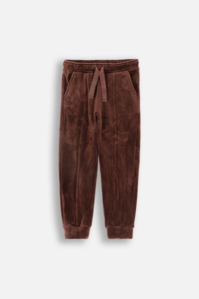 Teplákové kalhoty - hnědé s vázáním v pase s regular střihem - velikost: 110 - pro dívku