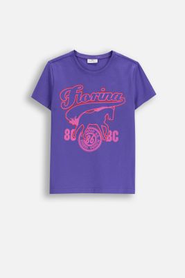 COCCODRILLO T-shirt z krótkim rękawem - fioletowy z napisami i nadrukiem na przodzie - rozmiar 134 - dla dziewczynki