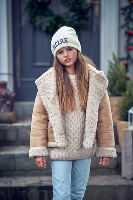 Broel czapka zimowa z pomponem - dziewczęca podwójna z bawełną z recyklingu - rozmiar 52 - dla dziewczynki