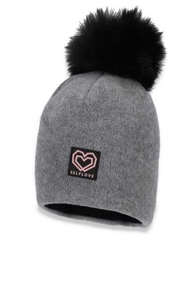 Broel czapka zimowa z pomponem - dziewczęca z micropolaru z bawełnianą podszewką - rozmiar 50 - dla dziewczynki