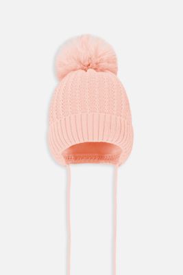 Broel czapka zimowa z pomponem - wiązana z bawełnianą podszewką - rozmiar 48 - dla dziewczynki
